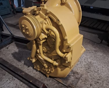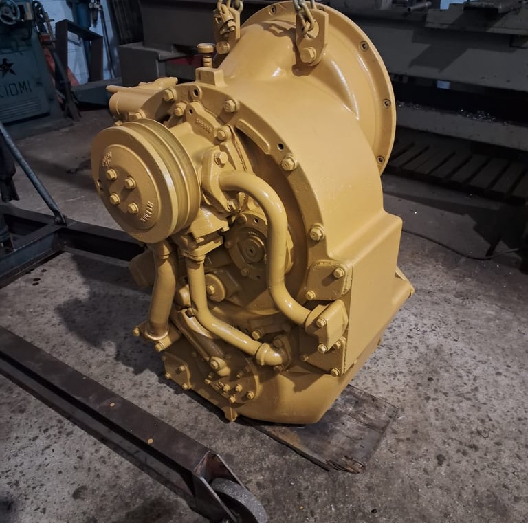 O processo de manutenção da transmissão da motoniveladora Caterpillar 120G inicia-se com a desmontagem completa do conjunto, seguindo procedimentos técnicos para retirada de conversor, carcaça e componentes internos. Na fase de revisão, todos os itens são inspecionados quanto a desgaste, folgas, trincas e funcionamento de válvulas e embreagens. Componentes danificados são substituídos por peças novas ou recondicionadas. Após a limpeza e conferência das folgas, procede-se com a montagem cuidadosa, respeitando torques e ajustes específicos. Finaliza-se com testes de funcionamento e verificação de pressão para garantir o pleno desempenho da transmissão no equipamento.
